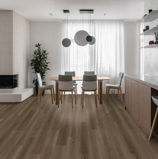 Hamilton Grove LVP is perfect for high-traffic areas, resisting spills, dents, scratches, and pet damage.