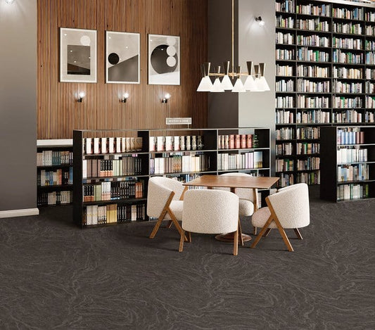 Inspired by vintage book covers, its flowing, marbled patterns add depth and visual appeal to any commercial setting.