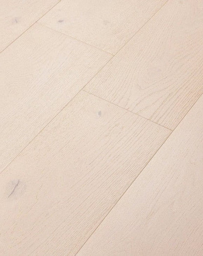 This oil-finished White Oak flooring offers timeless beauty, enhanced by its wide planks and wire-brushed texture.