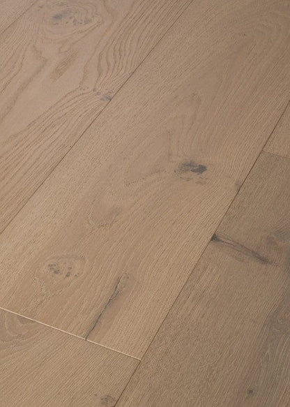 This oil-finished White Oak flooring offers timeless beauty, enhanced by its wide planks and wire-brushed texture.