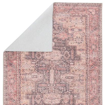 The Jaipur Living Kindred KND06 Washable Rug combines vintage charm with modern style, featuring a faded tribal medallion and floral accents.