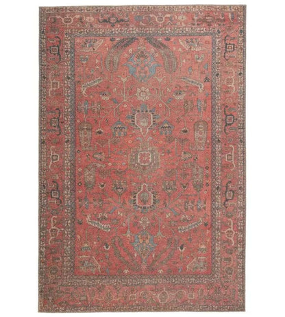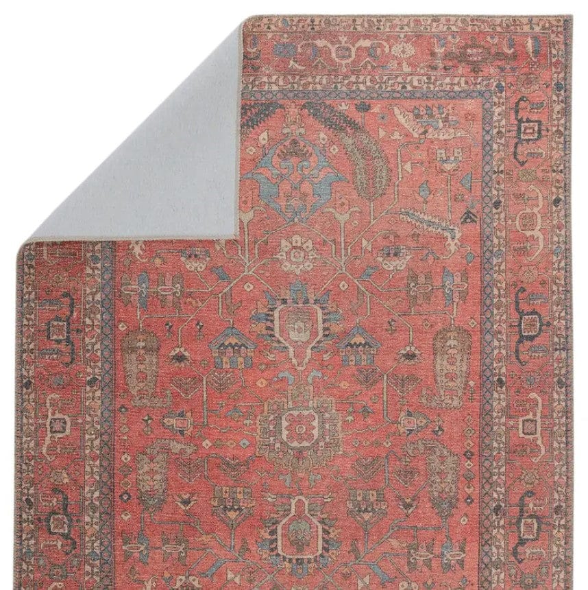 With its vibrant brick red, terracotta, and blue tones, this rug adds a touch of luxury to any space.