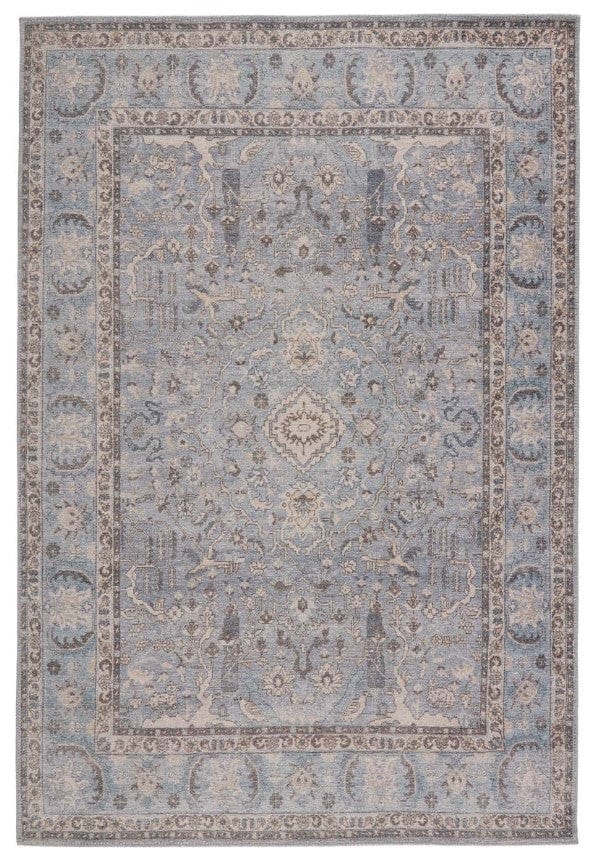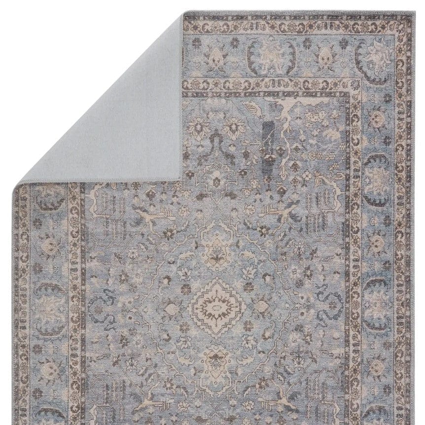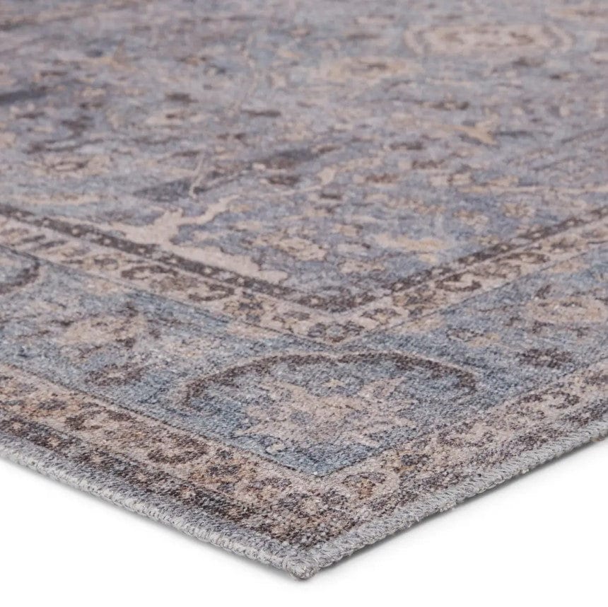 The Jaipur Living Kindred KND12 Washable Rug blends vintage charm with modern style in serene blue and gray tones.