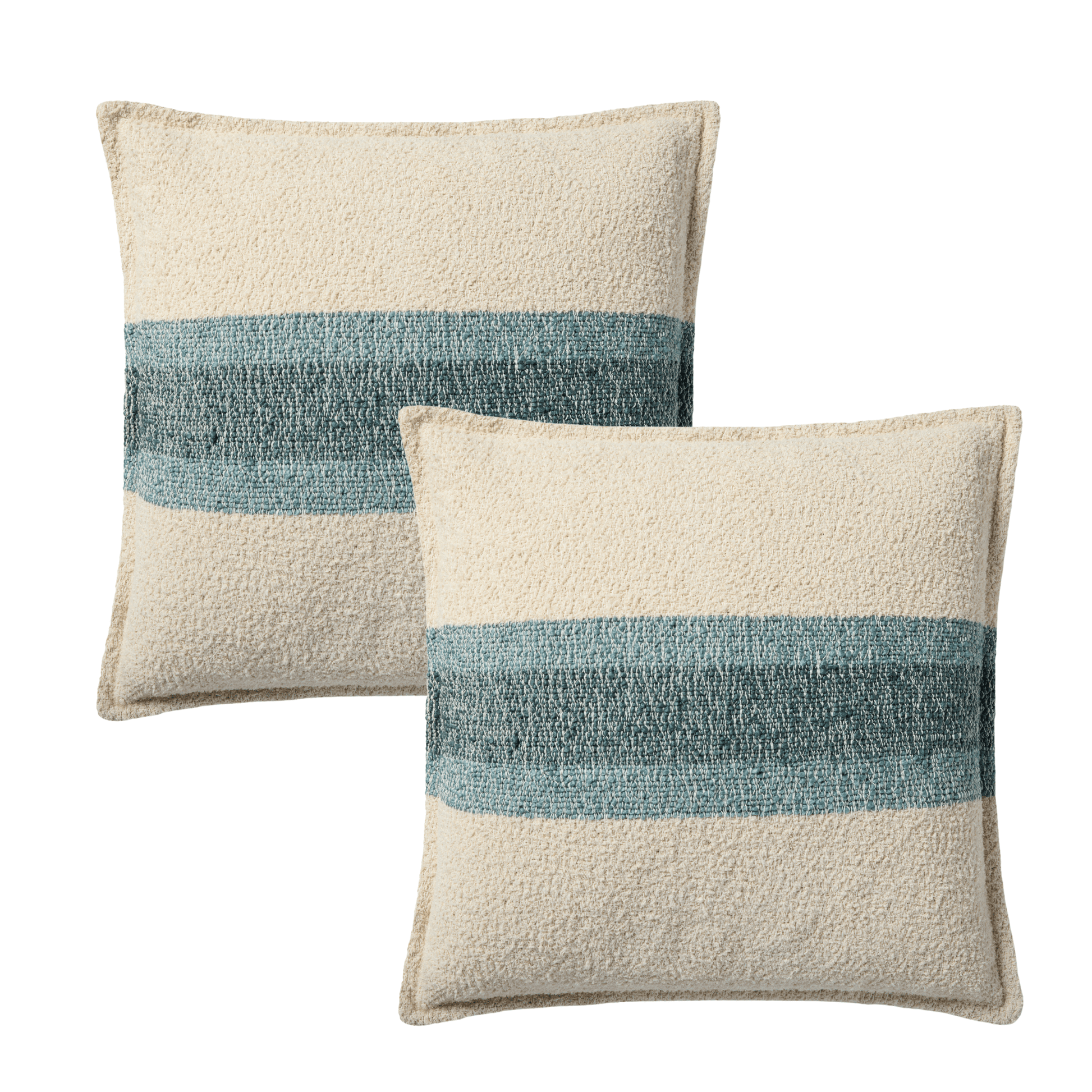 Loloi Brigette Romanek PBR0016 Natural / Blue Pillow Set is a result of collaboration between Brigette Romanek and Loloi.