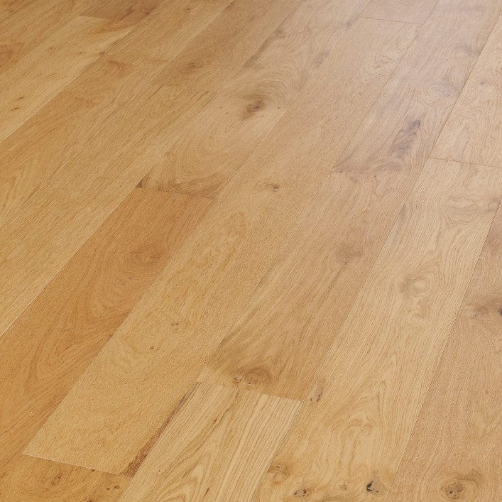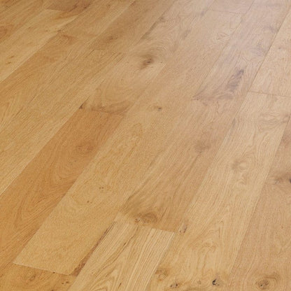 Each wide, long plank showcases unique grain patterns and warm tones, adding character to any space.