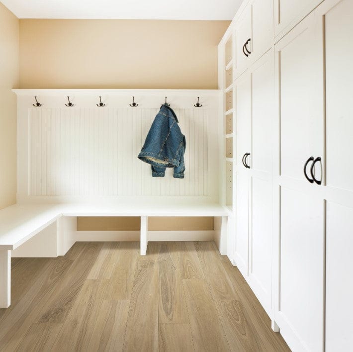 The 6" x 48" planks showcase the wood grain details beautifully, creating a spacious and open feel in any room.