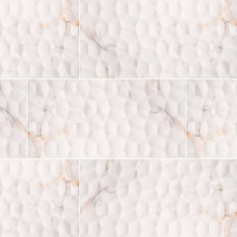 MSI Adella Viso Calacatta Ceramic Tile features a soft satin finish that highlights the exquisite relief pattern.