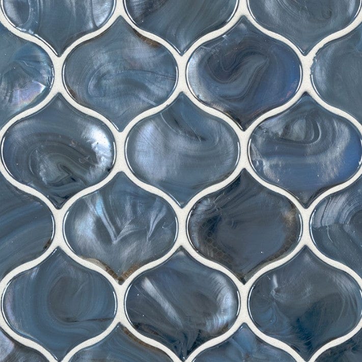 Blue Shimmer Arabesque Tile showcases a timeless shape in pearl-like ocean blue hues.