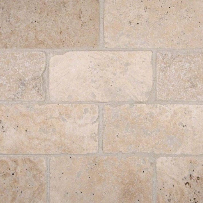 Bologna Chiaro 3x6 Tumbled Tile features warm beige and brown tones with rich variation for a timeless look.