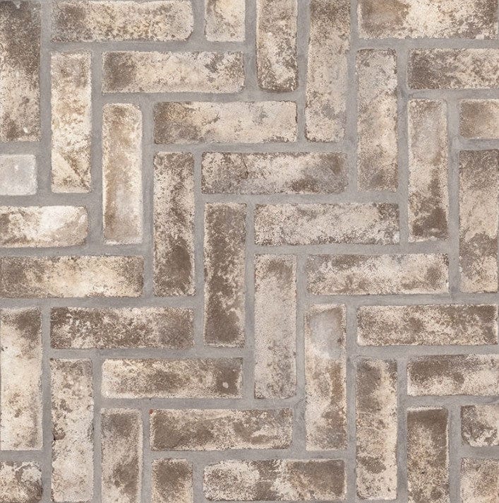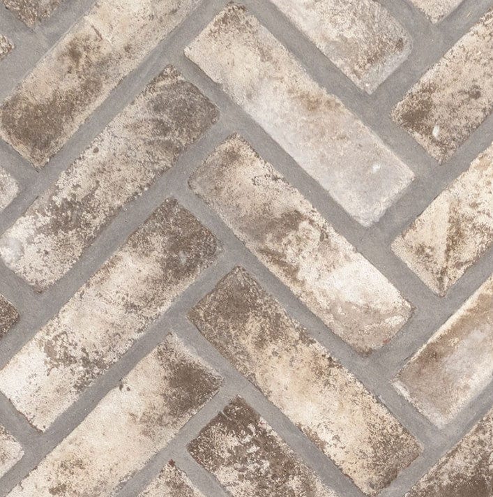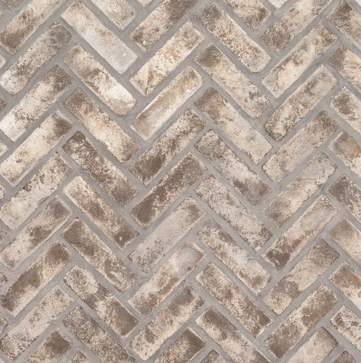 Elevate your home's aesthetic with the MSI BrickStaks® Doverton Gray Clay Brick Herringbone.