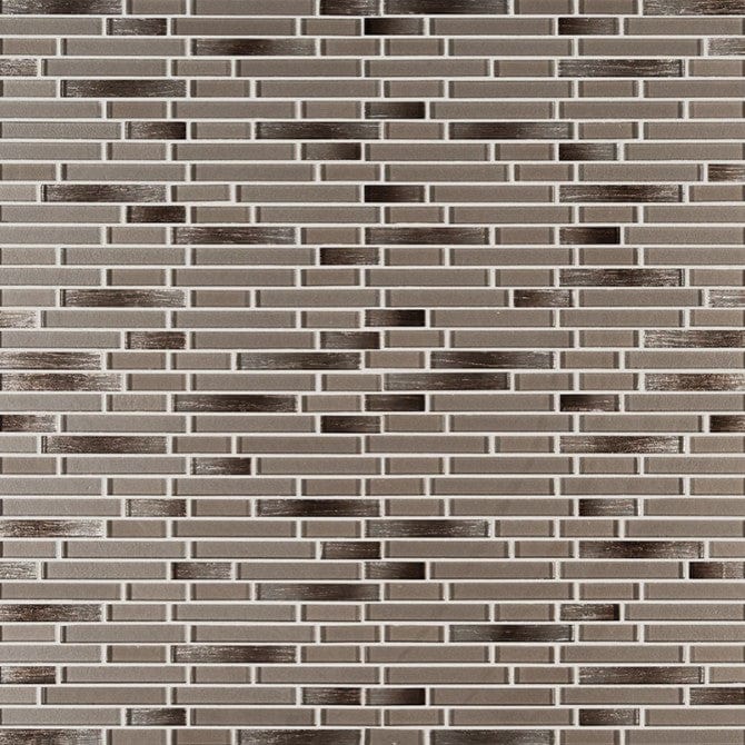 The prearranged crystalline glass adds depth and sophistication to backsplashes, showers, and fireplace facades.