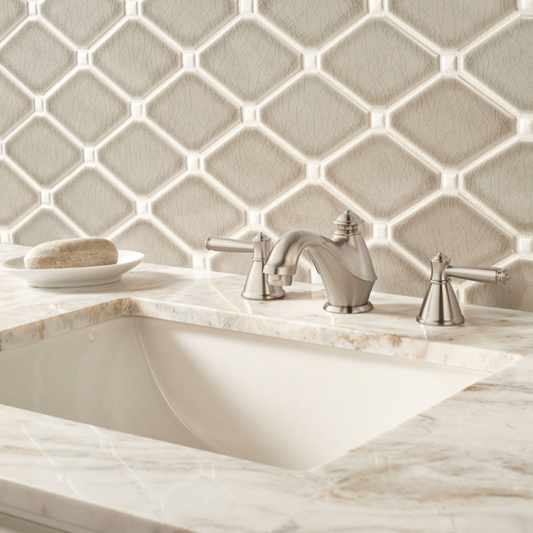 Dove Gray Diamond Tile from the Highland Park collection features a beautiful mid-tone gray, in an elegant graphic pattern.
