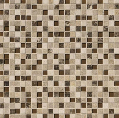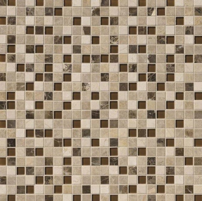 Ibiza Blend Tile combines glass and marble in a stunning mosaic design.