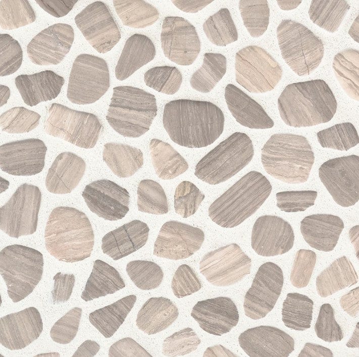 Bring natural elegance to any space with MSI Rio Lago White Oak Pebbles Tumbled Tile.
