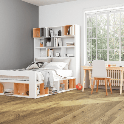 The GenuEdge® technology mimics real wood planks, and the durable laminate resists scratches, dents, and stains.